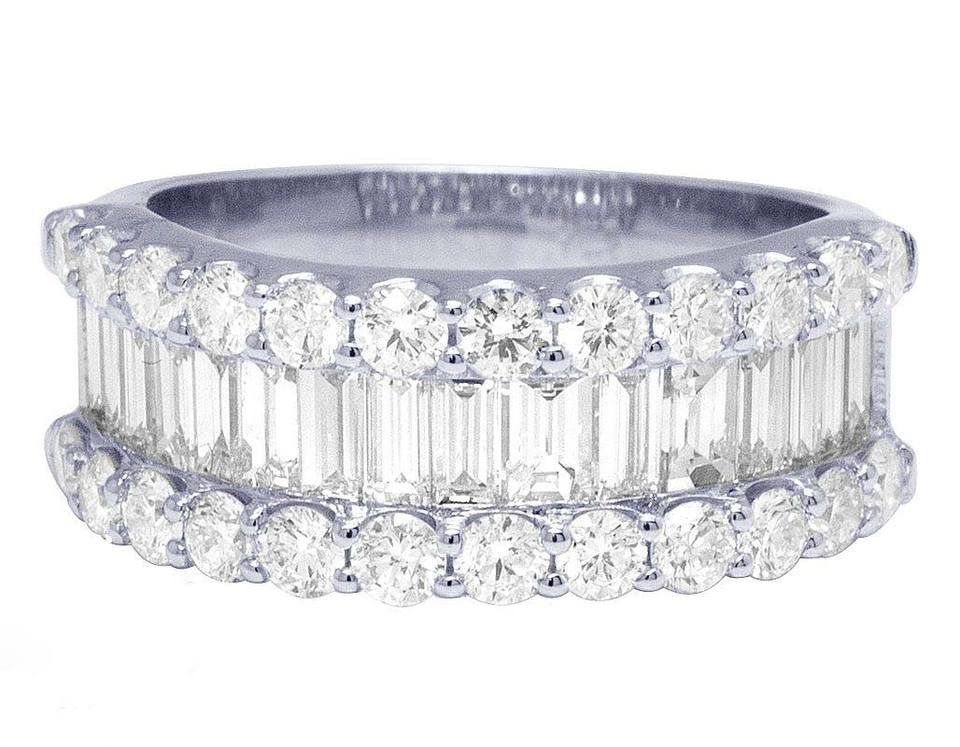 Hip Hop Iced Out 3.30 CT Bezel Set VVS Moissanite Round & Baguette Cut 925 Sterling Silver Ring for Women