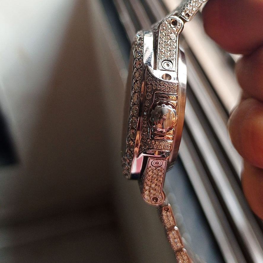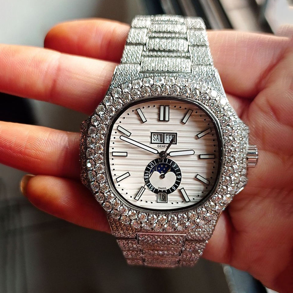 Hip Hop Iced Out Diamond White Gold Plated Men's Wrist Watch Diamond Round Cut Automatic Watch Anniversary Gift by Ritzin