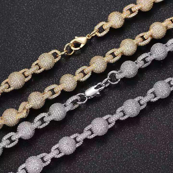 Hip Hop Iced Out Gold Cuban Ball New Design Vvs Mossanite Diamond Link Chain for Men Wholesale price fine Jewelry
