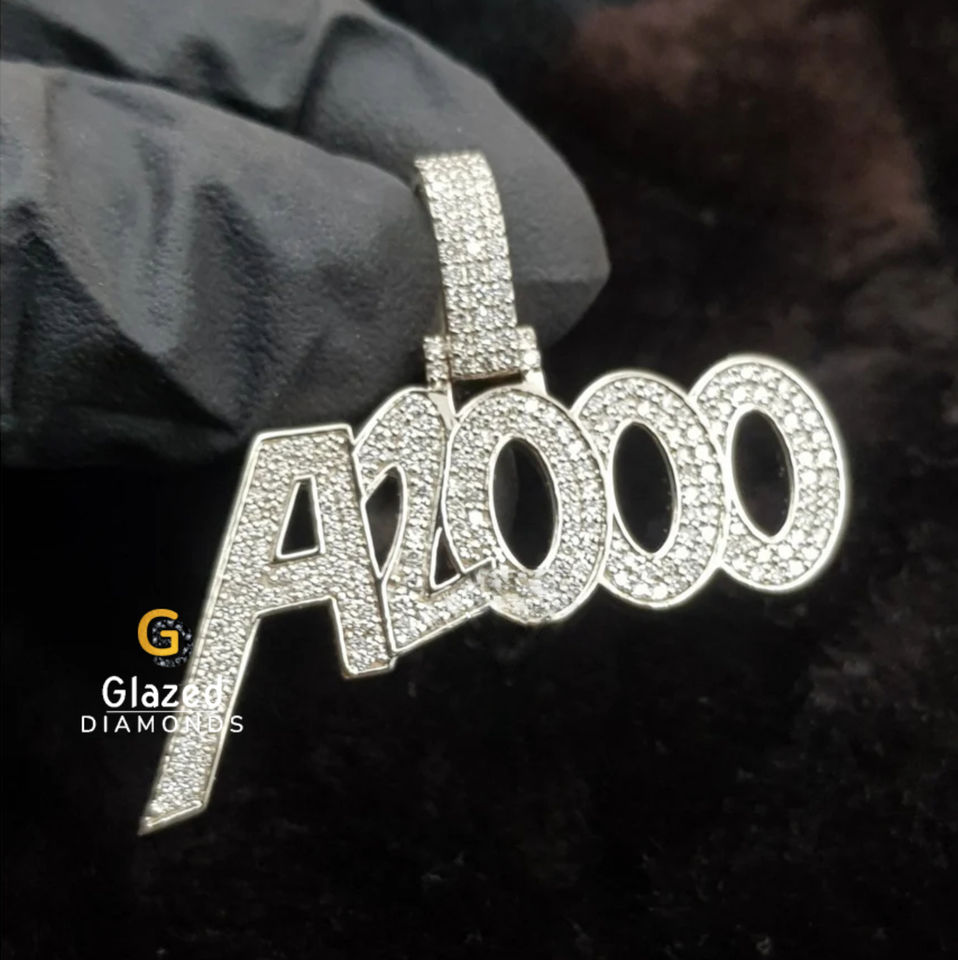 Hip Hop Iced Out Pendant in 925 Sterling Silver and Round Brilliant Cut Moissanite Diamonds for Unisex