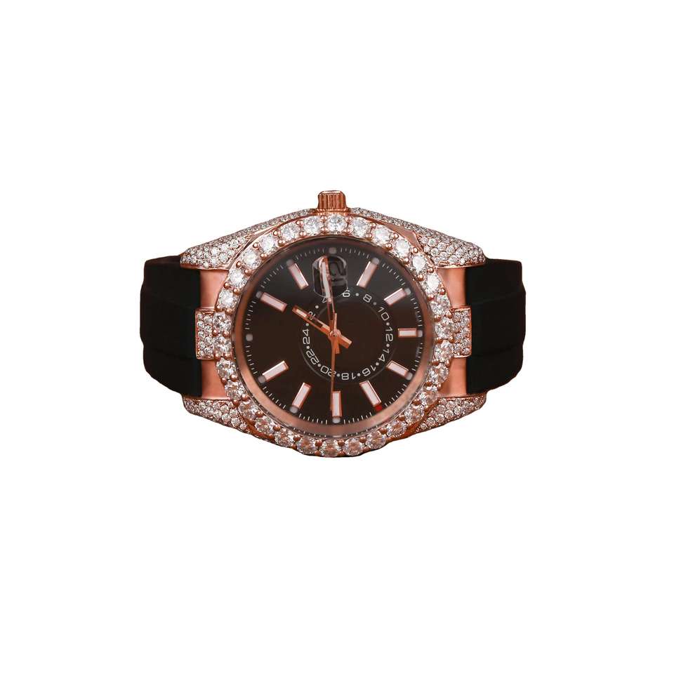 Hip Hop Jewelry Crafted with Moissanite Diamond Stylish Watch for Men Leather Band Water Resistant Analog Glass Dial