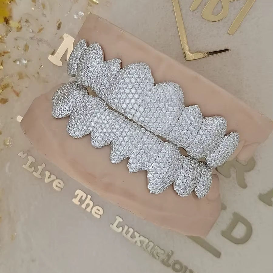 Hip Hop Jewelry Grills Teeth Grillz 925 Sterling Silver Rose Gold Iced out in lab grown diamond