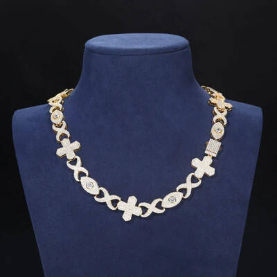 Hip Hop Jewelry Men White Gold Plated 12mm 925 Sterling Silver Paved Iced Out Moissanite Cross Cuban Link Chain