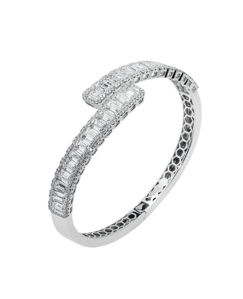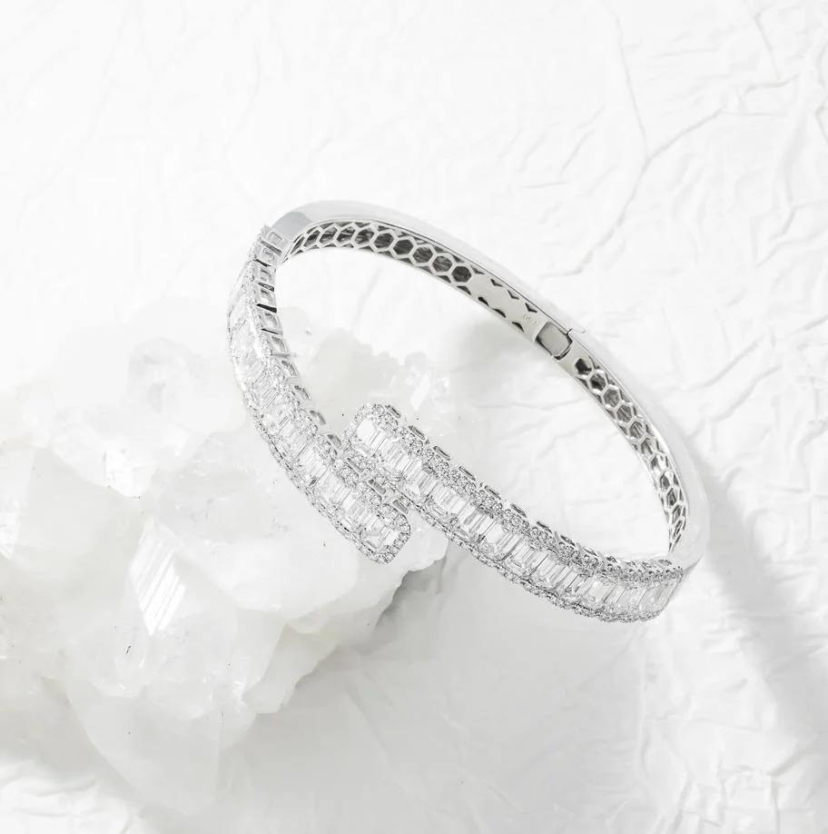 Hip Hop Jewelry White Gold Diamond 925 Sterling Silver VVS Baguette Diamond Iced Out Cuff Bangle Bracelet for Women