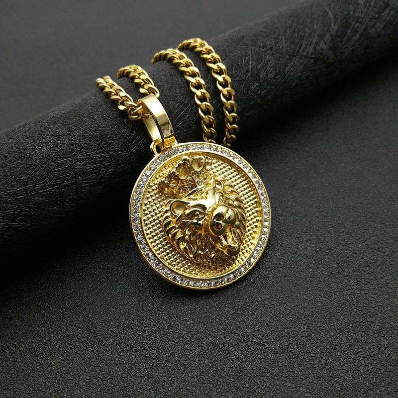 Hip Hop Lion Iced Out CZ Crown Coin Stainless Steel Gold Plated Pendant Jewelry Fine Fashion Jewelry Necklace for Men Wholesale
