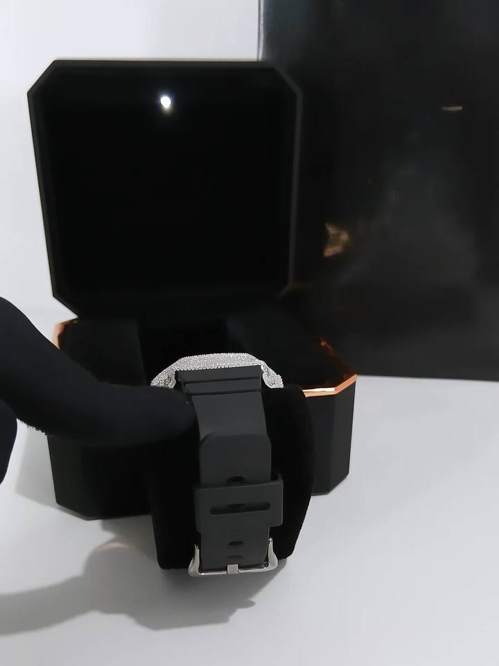 Hip Hop Luxury GM2100 Stainless Steel & Rubber Watch Bezel Case Iced VVS Moissanite Diamond Digital Display for Kids New Fashion