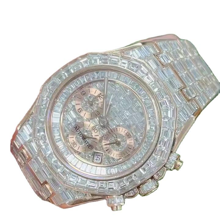 Hip Hop Luxury Stainless Steel Antique Fashion Moissanite Diamond Watch for Men Brilliant Baguette Cuts Sapphire Glass 30M