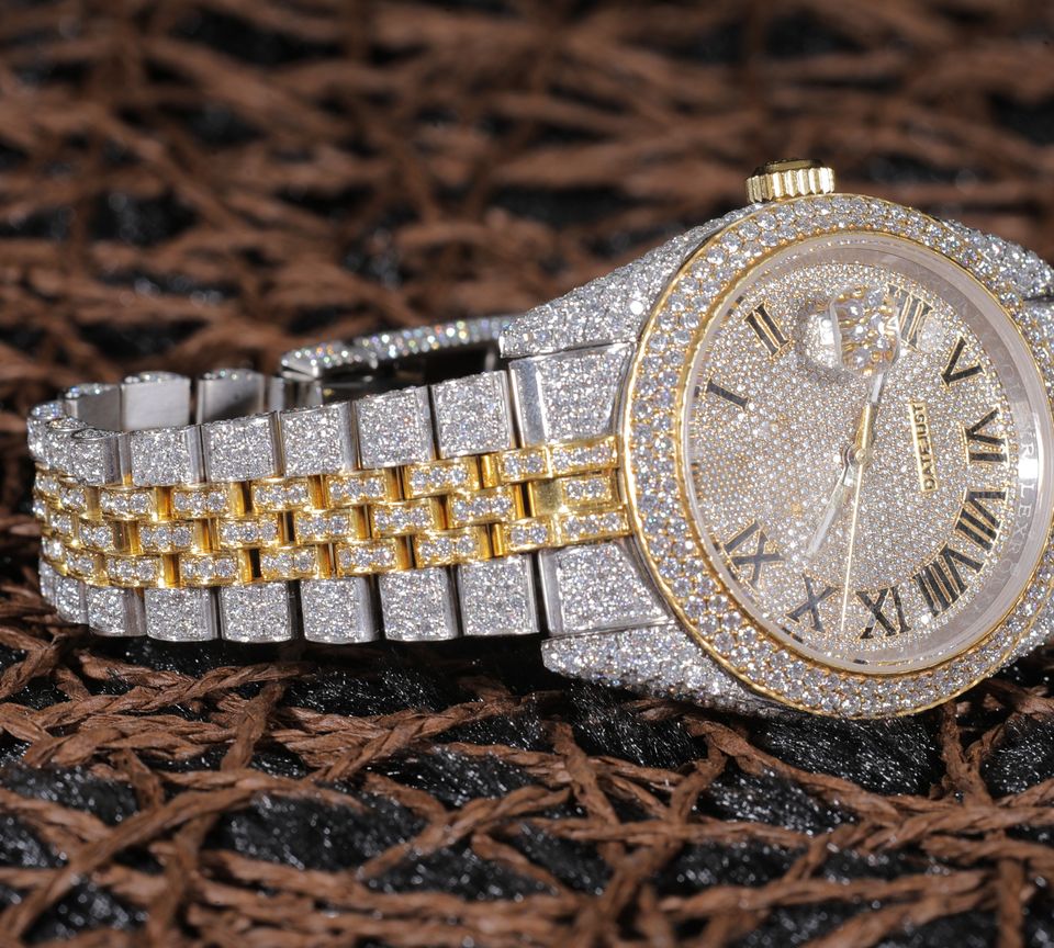 Hip Hop Men's Fully Iced Lab Grown Chronograph Watch Brilliant Cut VVS Clarity Sparkling Diamonds Steel Case Smart Dial Display