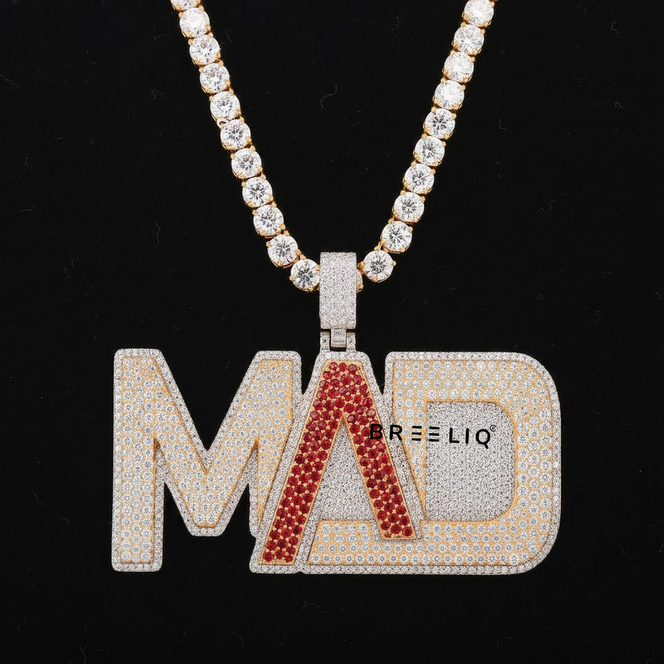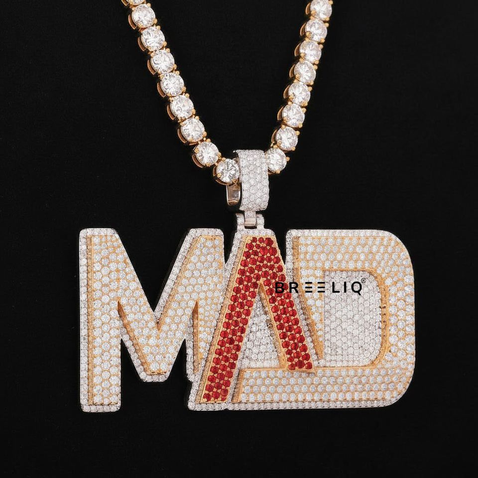 Hip Hop Mens Custom Initial Pendant Necklace 925 Sterling Silver Iced Out Chain Set With VS Moissanite Stones