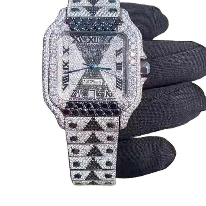 Hip Hop Classic Stainless Steel Moissanite Diamond Watch Waterproof Quartz Custom Black White Luxury Men's Fashion
