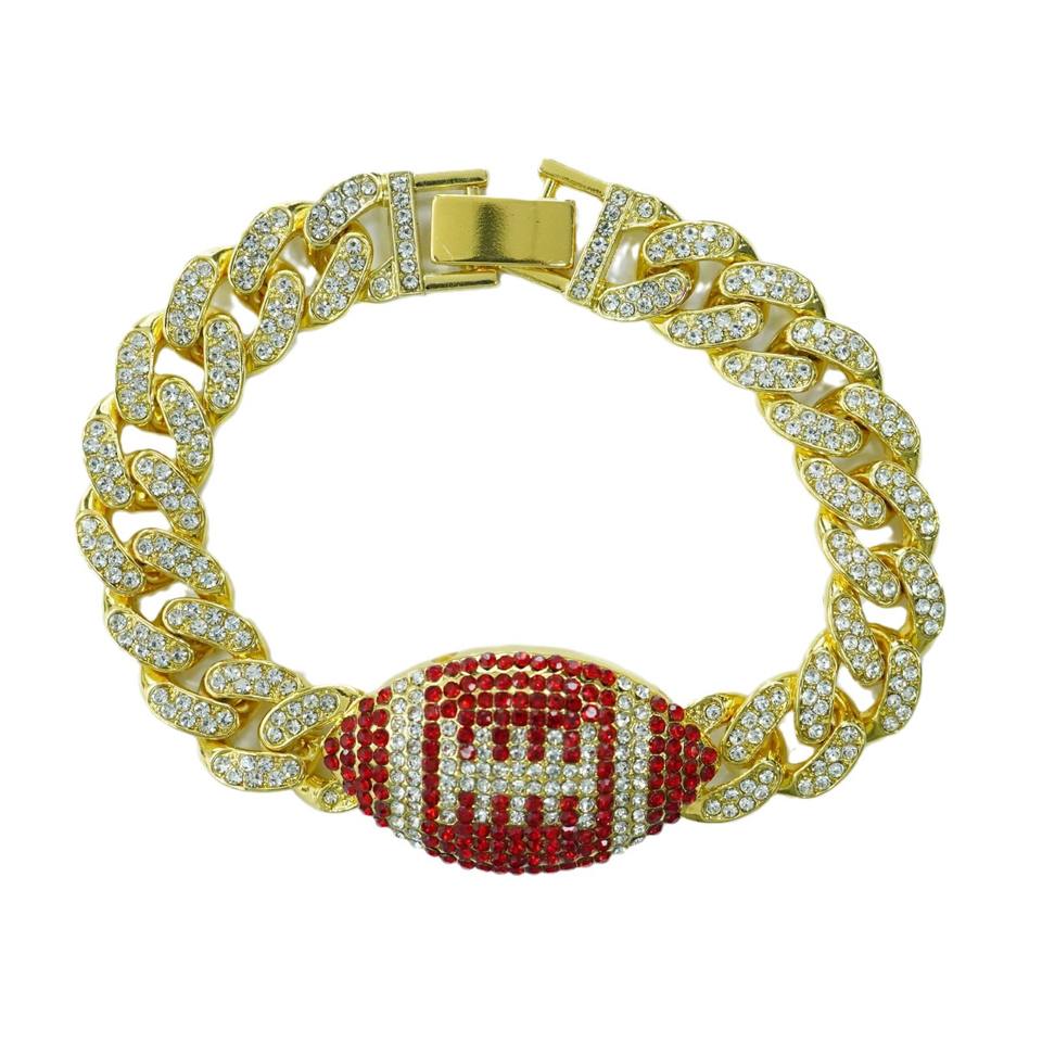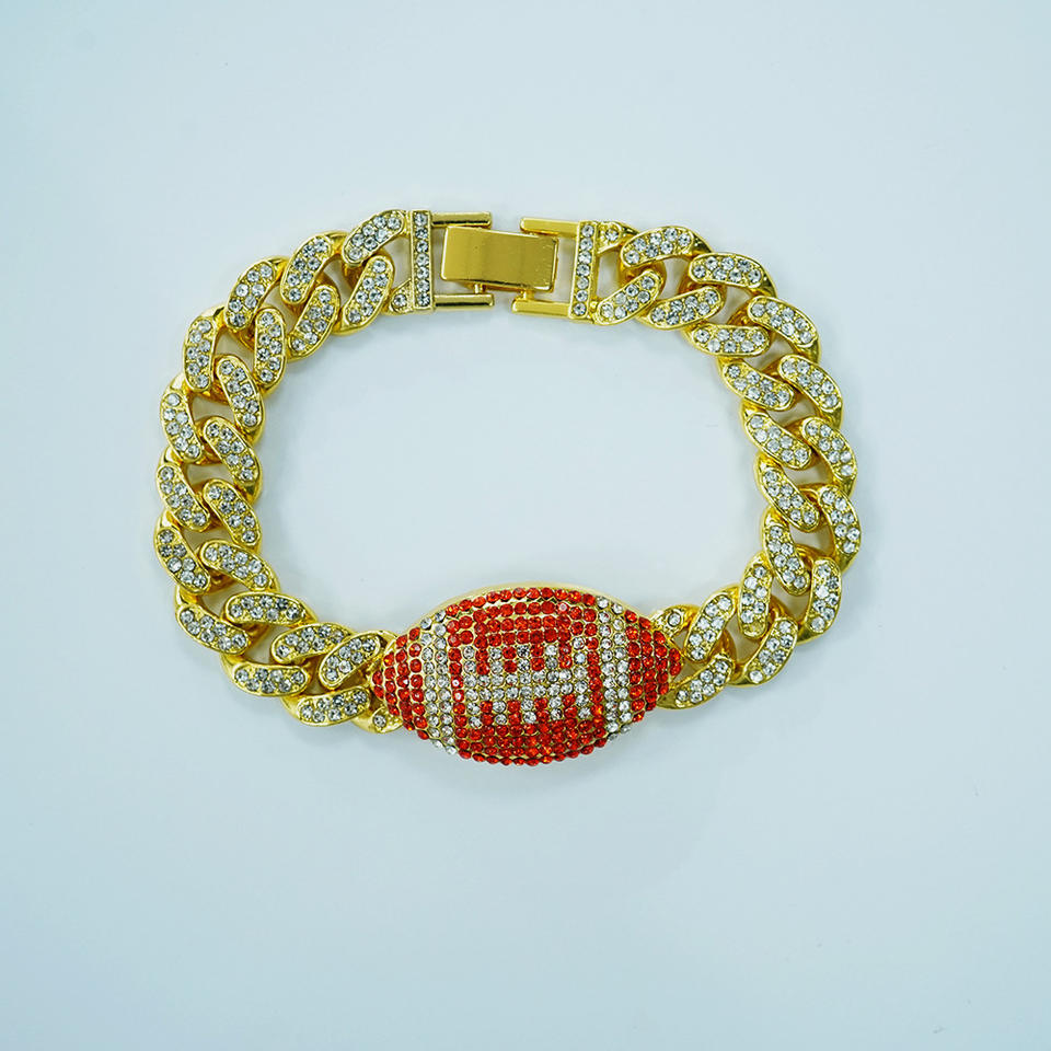 Hip Hop Red Rugby Bracelet Personality Men's Full Cuban Rugby Bracelet Tanjing Fashion Lijing Necklace