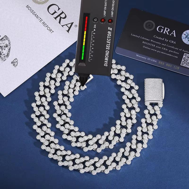 Hip Hop Rock Solid 925 Sterling Silver Cuban Link Chain Necklace for Men & Women Moissanite Diamond Fine Hand Made Jewelry