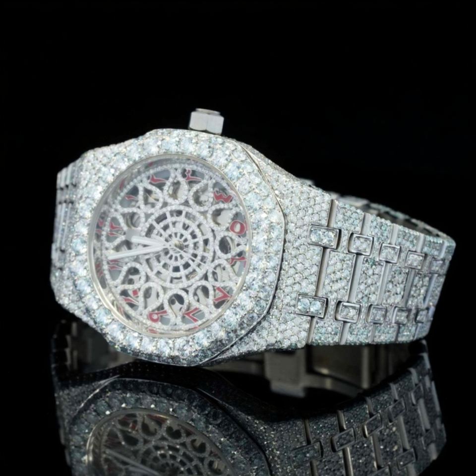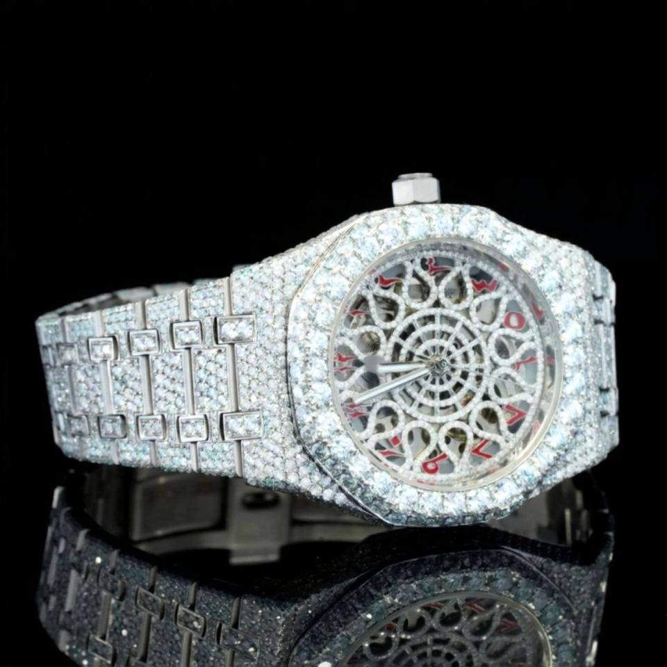 Hip Hop Round Style Customized Bezel With Red Arabic and Flower look Dial Stainless steel Hip Hop Diamond Watches For Fashion