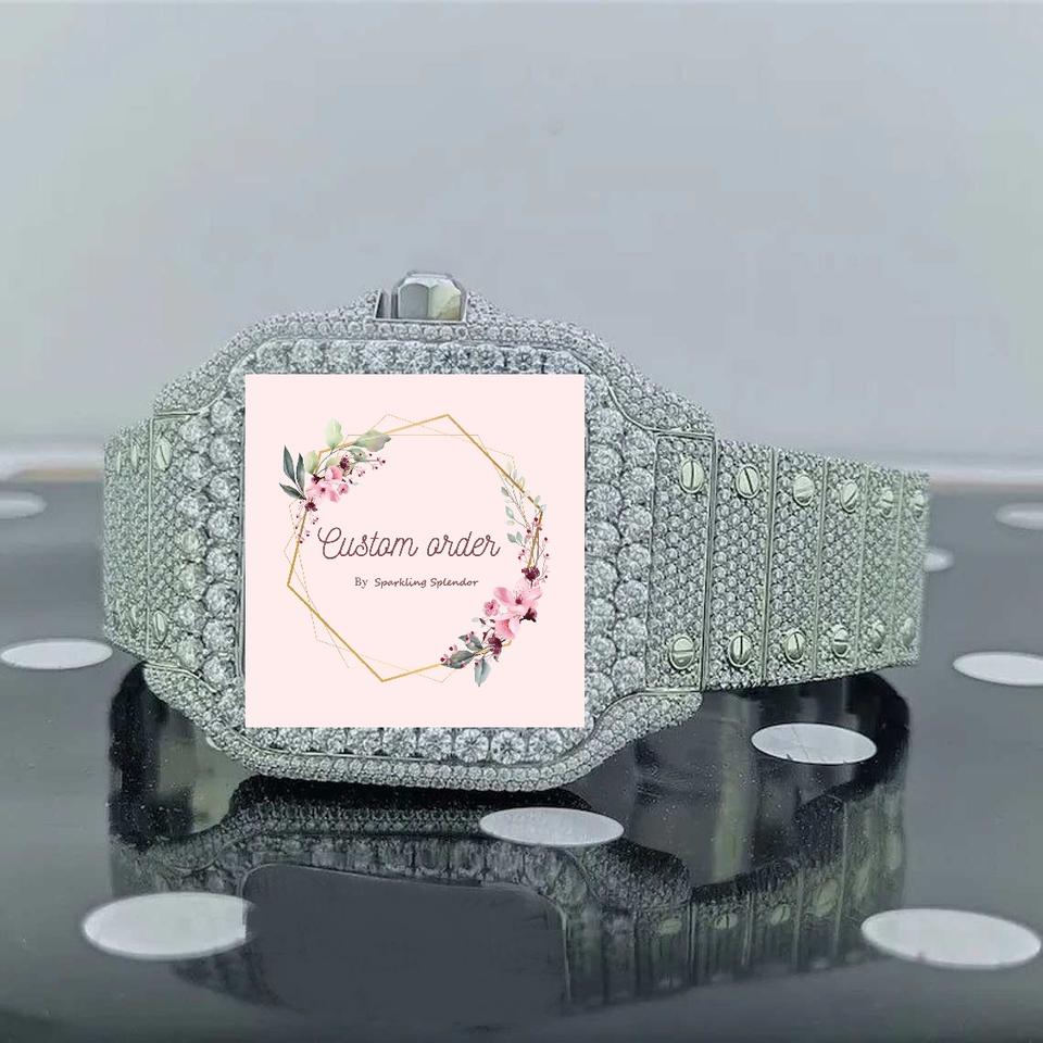 Hip Hop Square Stainless Steel Mechanical Watch Custom High end Luxury Bling Full Iced VVS Moissanite Sapphire Crystal for Men