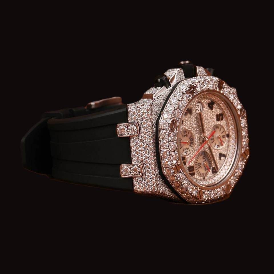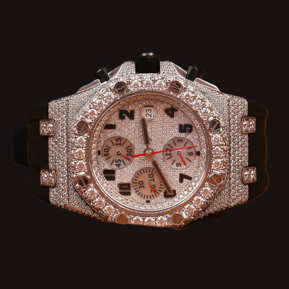 Hip Hop Style Exclusive Moissanite Diamond With Auto Date and Multi Functional Features Trendy Black Band Man's Diamond watch