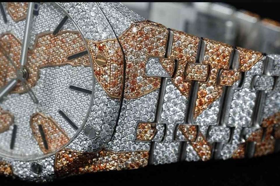 Hip Hop Style Iced Out Luxury Stainless Steel Quartz Movement Two Color Moissanite Diamond Crafted Watch for Men and Women.