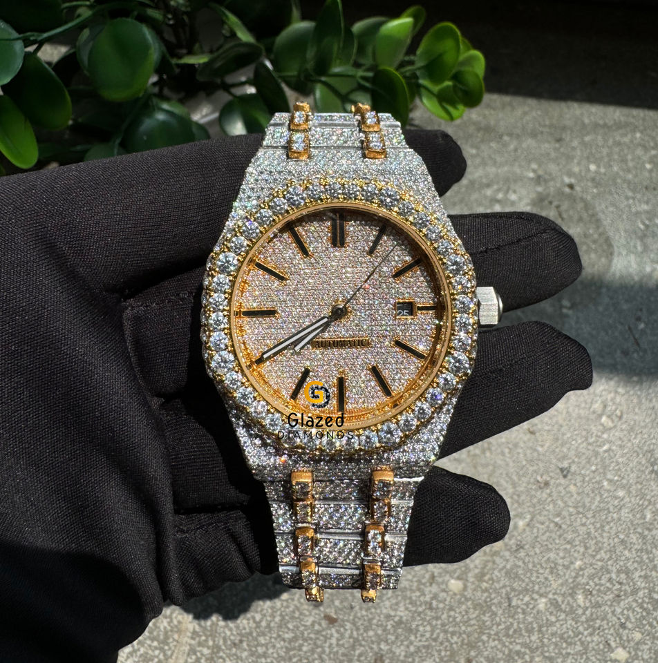 Hip Hop Style Men's Mechanical Watch Brilliant Cut Diamonds Stainless Steel Moissanite Date Feature Glass Dial Window Enhanced