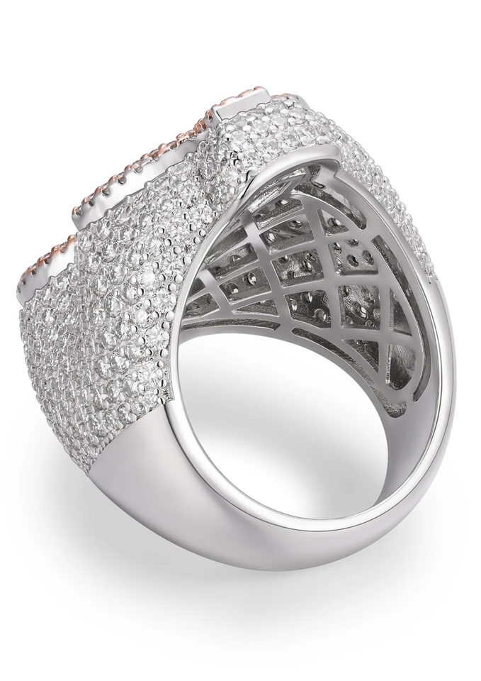 Hip Hop Style Moissanite Statement Ring Round Brilliant Cut Prong Setting Rhodium 14K Gold Plated Party Gift Jewelry