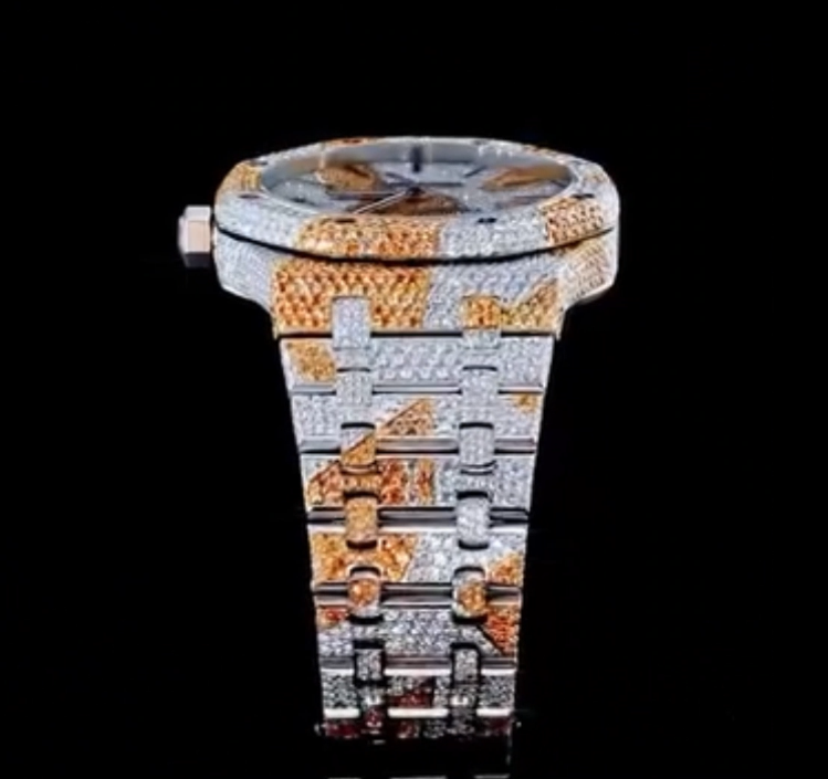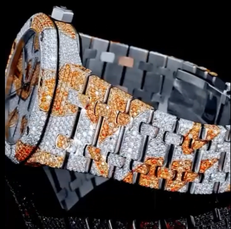 Hip Hop Style Stainless Steel Luxury Men's Watch Handmade Studded Two Tone Gold Plating Diamond Quartz Movement ETA Glass Dial