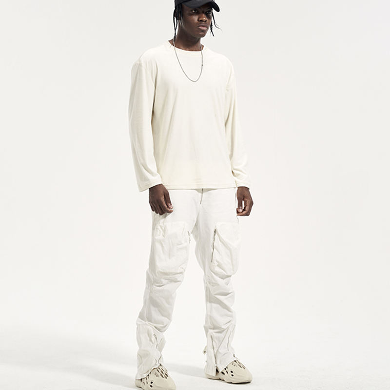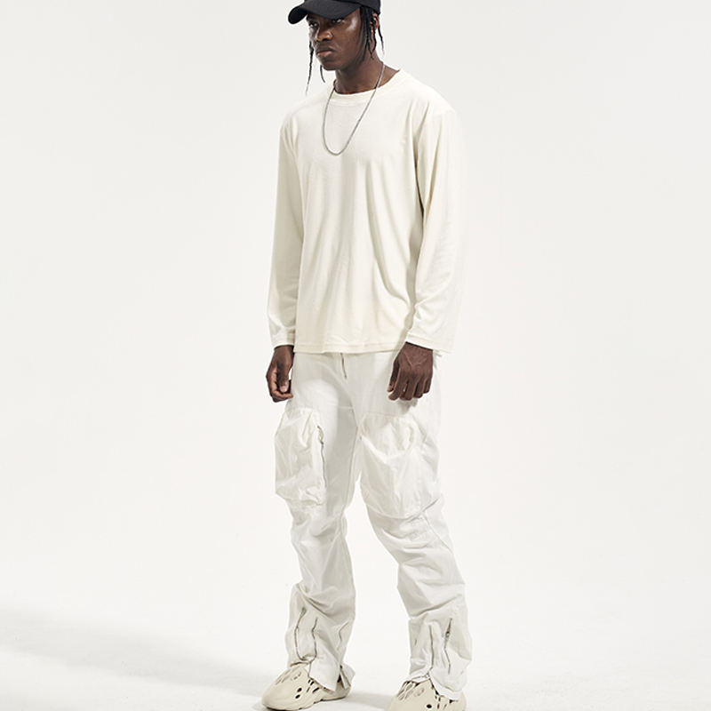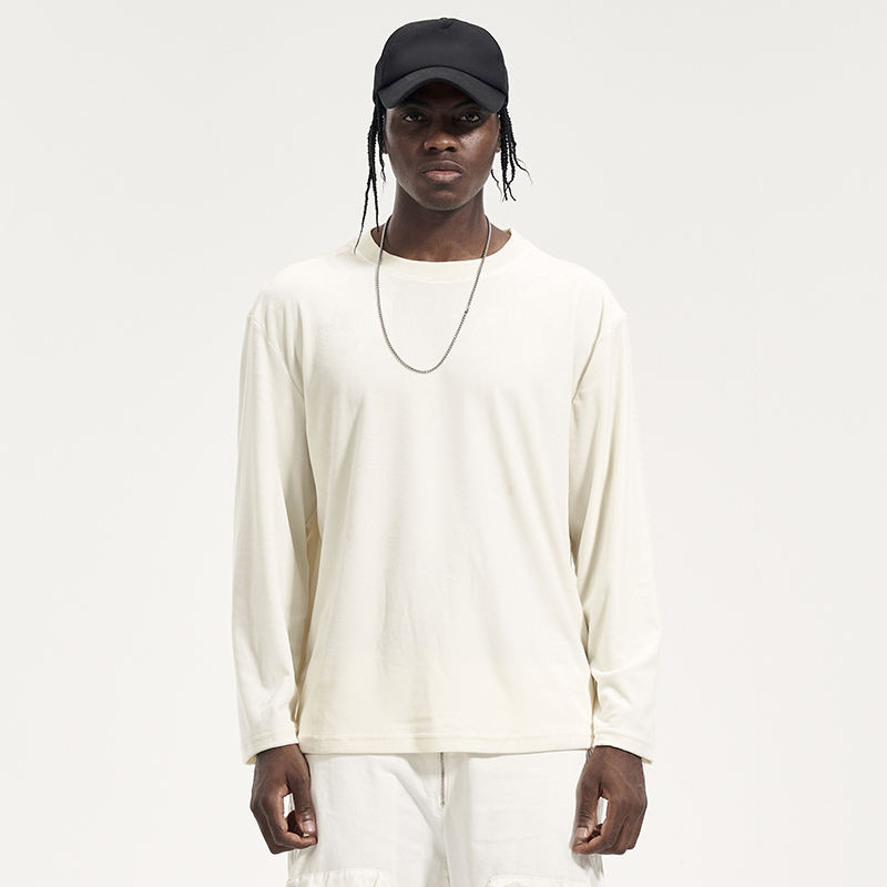 Hip Hop Style T-Shirt 100% Cotton Crew Neck White Men's T-shirts Heavyweight Oversized Plain Custom Long Sleeve T-shirt
