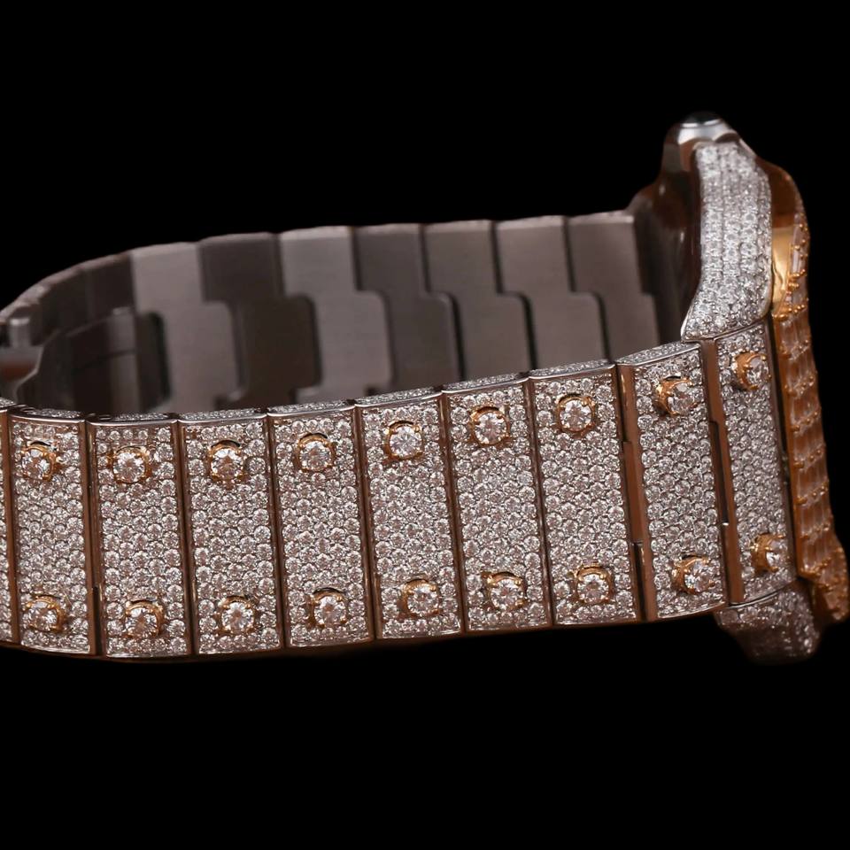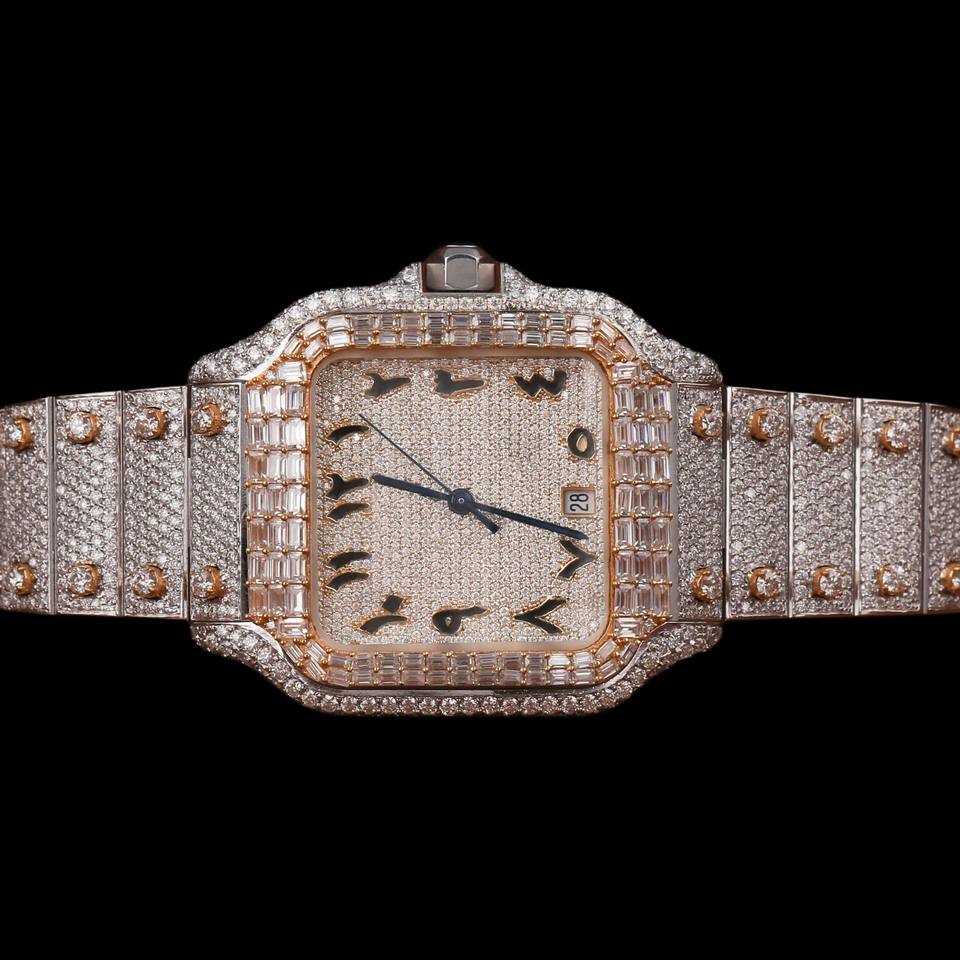 Hip Hop Style Two Tone Brilliant Cut Moissanite Diamond With Square Dial Custom Iced Out Rapper Watch Modern Fashion Wristwatch