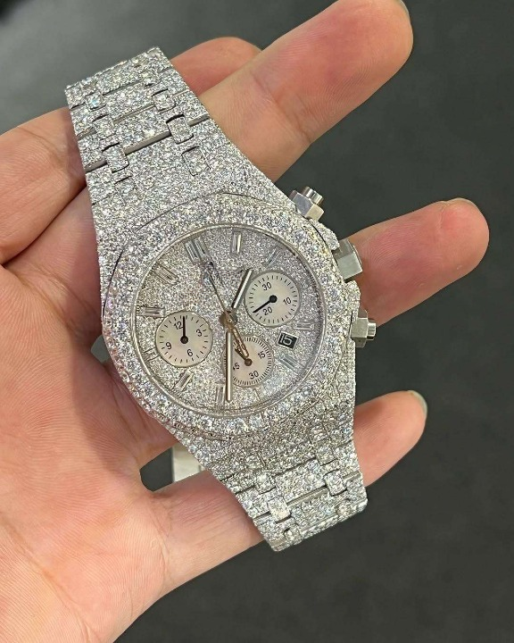 Hip Hop Style Sport Stainless Steel Luxury VVS Moissanite Fully Iced Diamond Quartz Movement Glass Dial Window Automatic Watch.