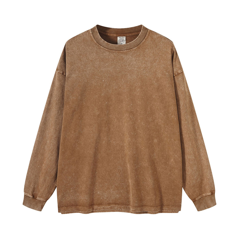 Hip Hop Styles 100% Cotton Acid Wash Sweatshirt Solid Color Crewneck Pullover Long Sleeve T shirt with Faded Technique Design