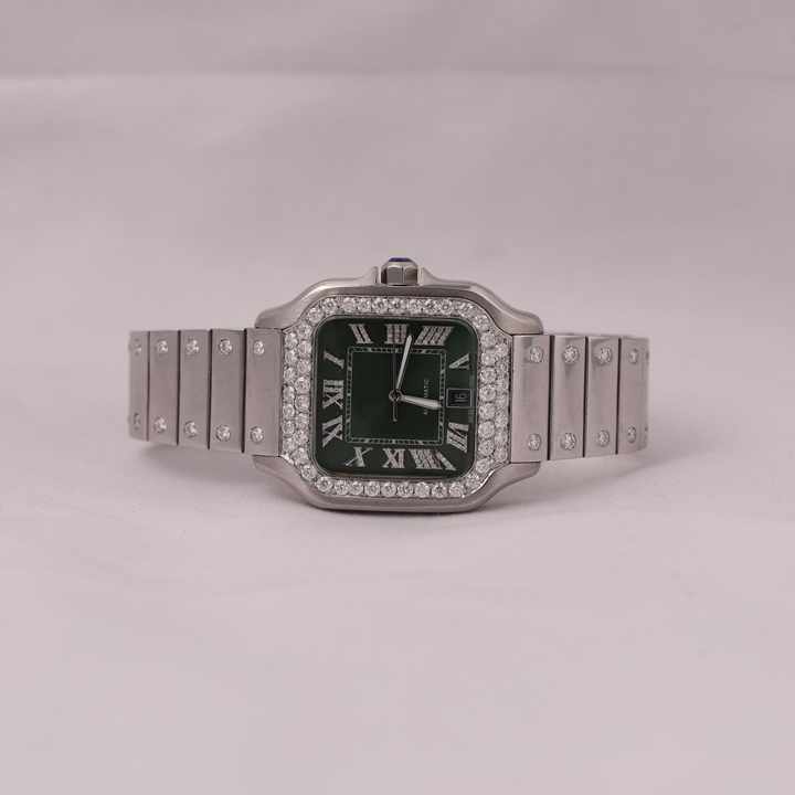 Hip Hop Stylish Men's Wrist Watch Moissanite Diamond VVS Clarity Quartz Movement Leather Band Crafted Jewelry