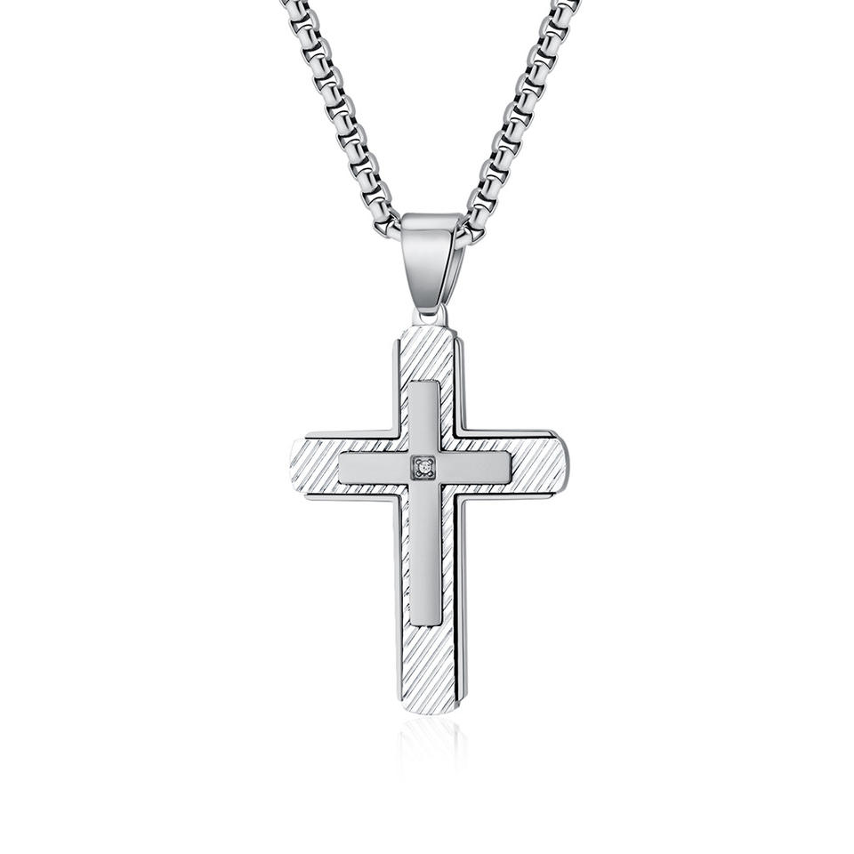 Hip Hop Twill Religious Cross Anti Non Tarnish WaterProof Pvd Stainless Steel Fashion Jewelry Pendant Necklace for Men Wholesale