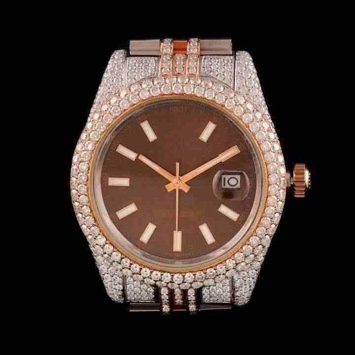 Hip Hop Two Tone Men's Designer Watch Full Iced Lab Grown Diamond Stainless Steel Popular Analog Dial Glass Unique Collection