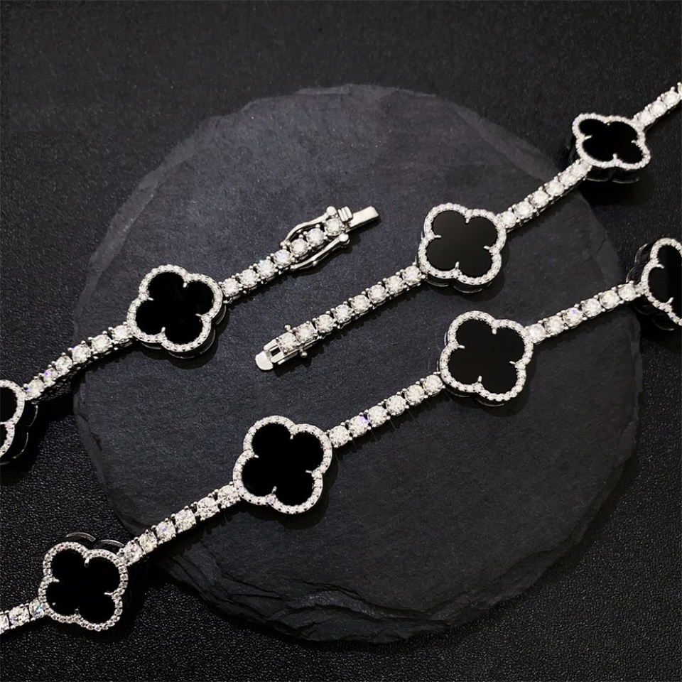Hip hop jewellery moissanite clover tennis chain necklace iced out black flower luxury men statement designer chain