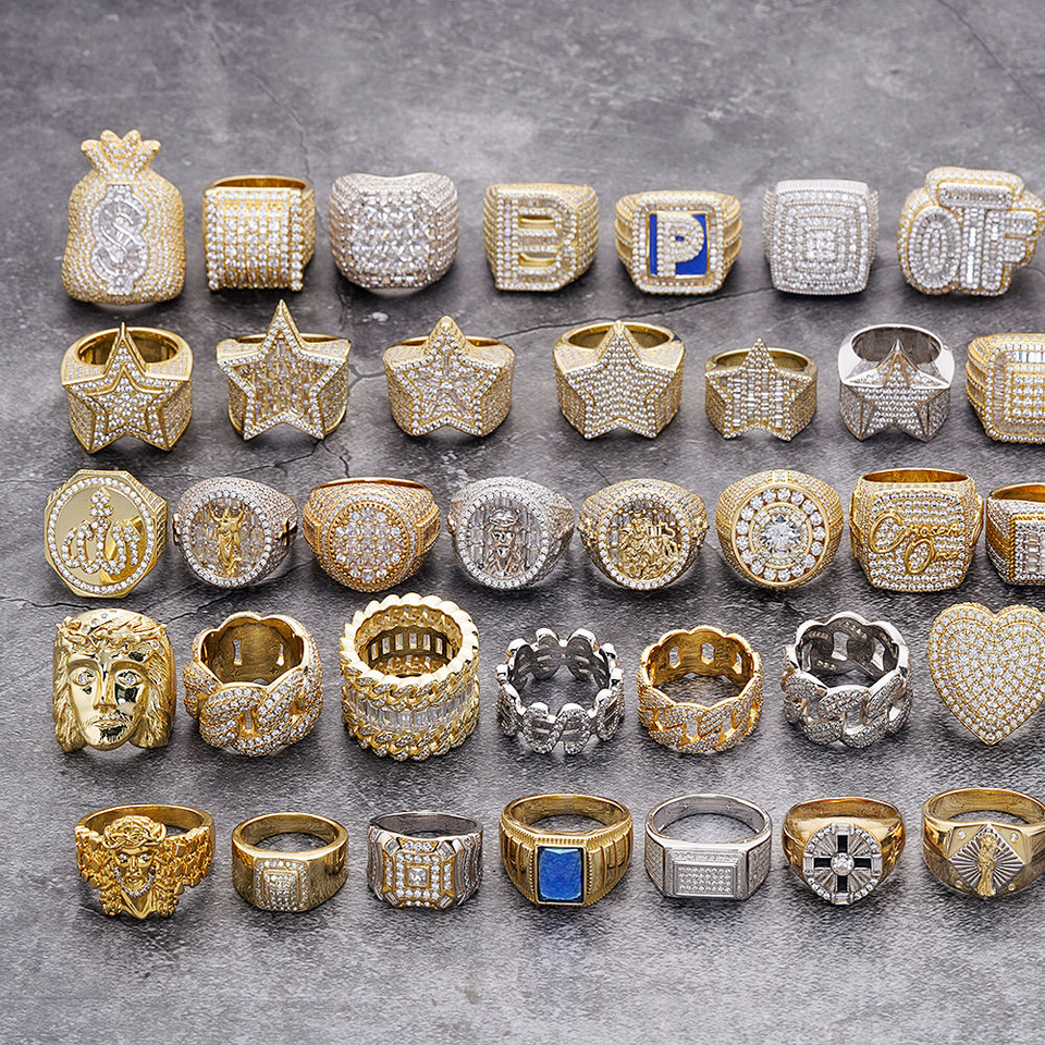 Hip hop jewellery moissanite iced out ring collection luxury gold silver statement men womens bling designer style