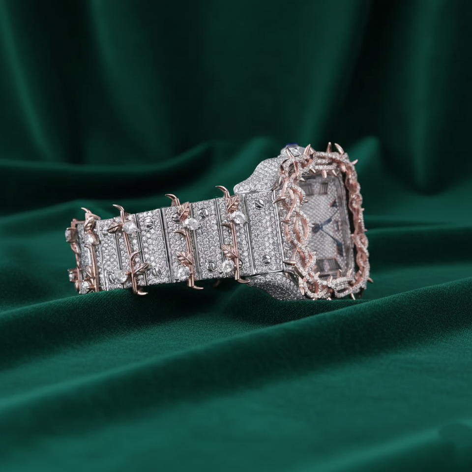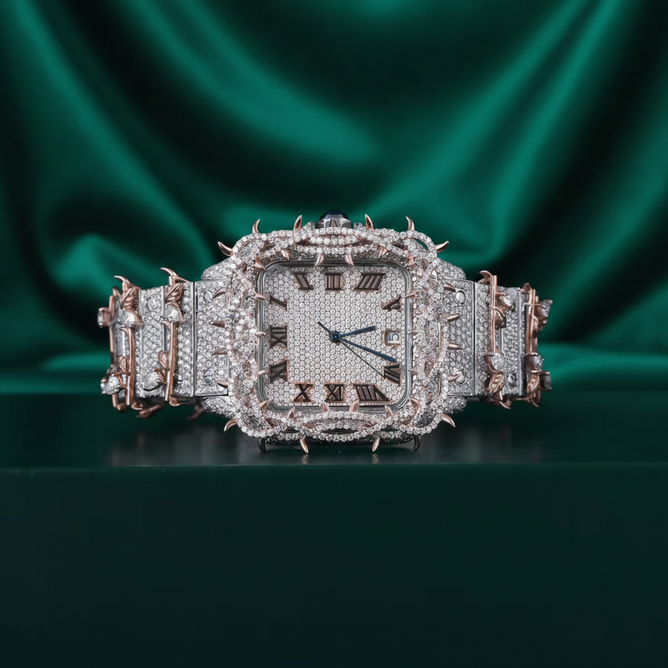 Luxury Hip Hop Custom Stainless Steel Leather Strap Water Resistant Analog Glass Dial Watch