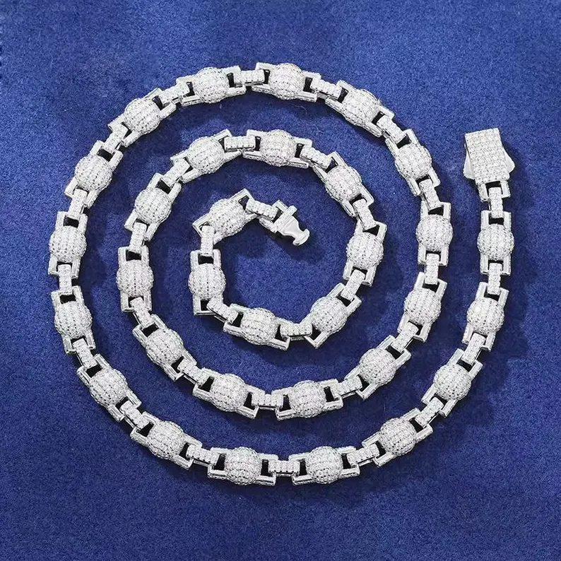 Hip hop moissanite chain necklace luxury street style mens hip hop jewellery chain