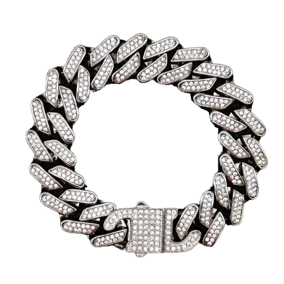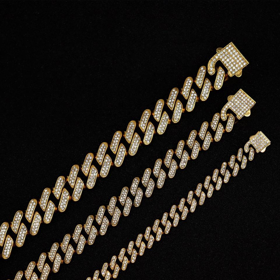 HipHop Heavy Iced Out Chain Men Miami Stainless Steel Full Cubic Zircon Sier Cuban Link Necklace Jewelry Set