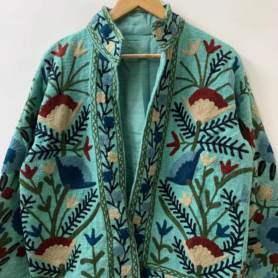 Hippie Embroidered Suzani TNT Winter Wear Embroidered Jacket Collar Tailored Jacket Bomber Coat Hippie Jacket for Womens