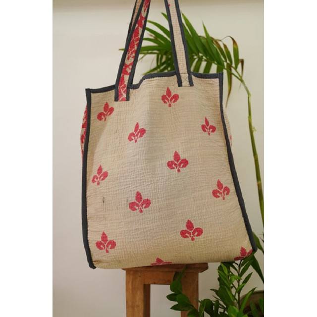 Hippie Quilted Handprinted Cotton Quilted Reversible Shopping Tote Bags for Women