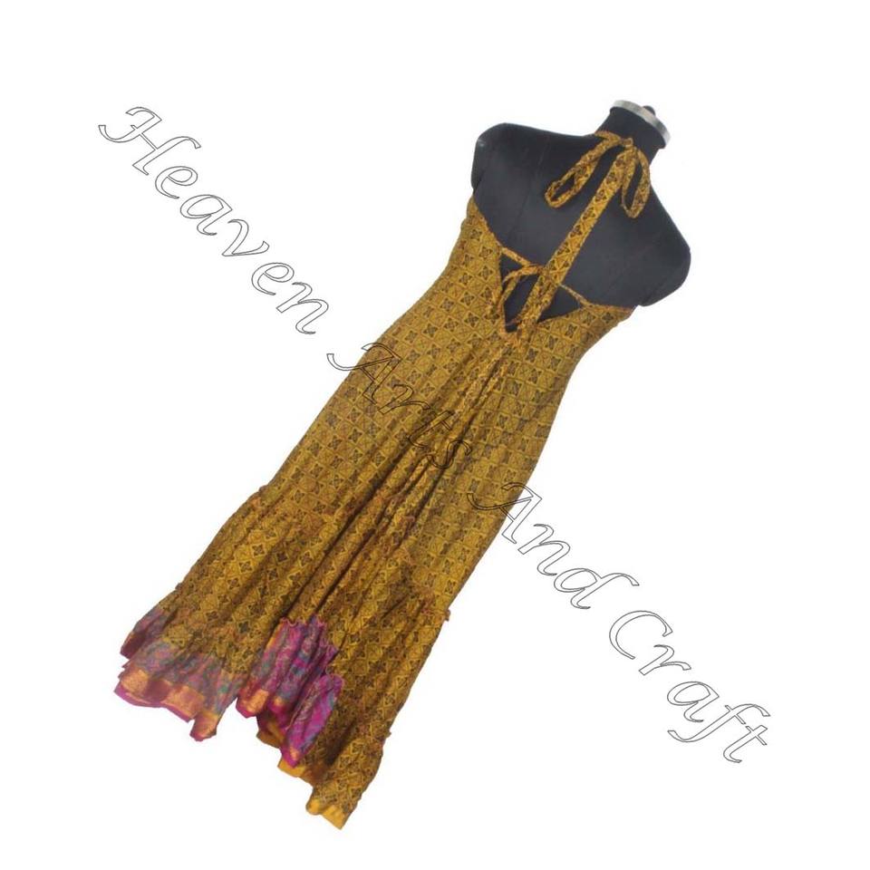 Hippy Boho 2025 Summer Collection Women's Wear Indian Silk Sari Vintage Summer Dress Ladies Elegant Dinner Gown Sleeveless