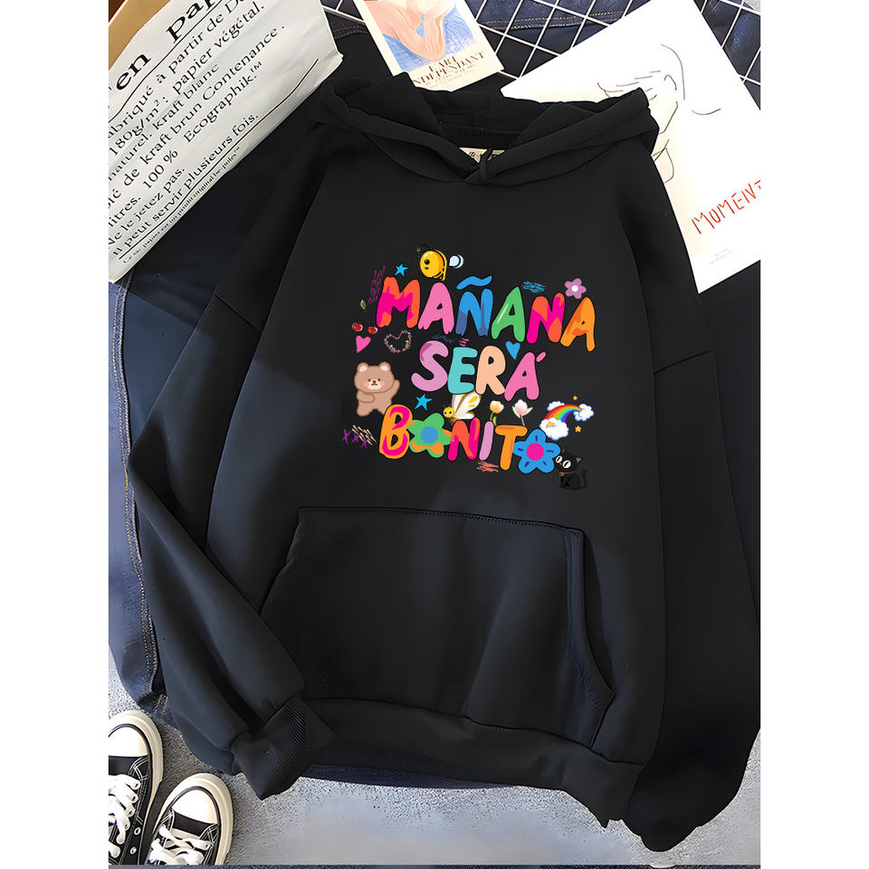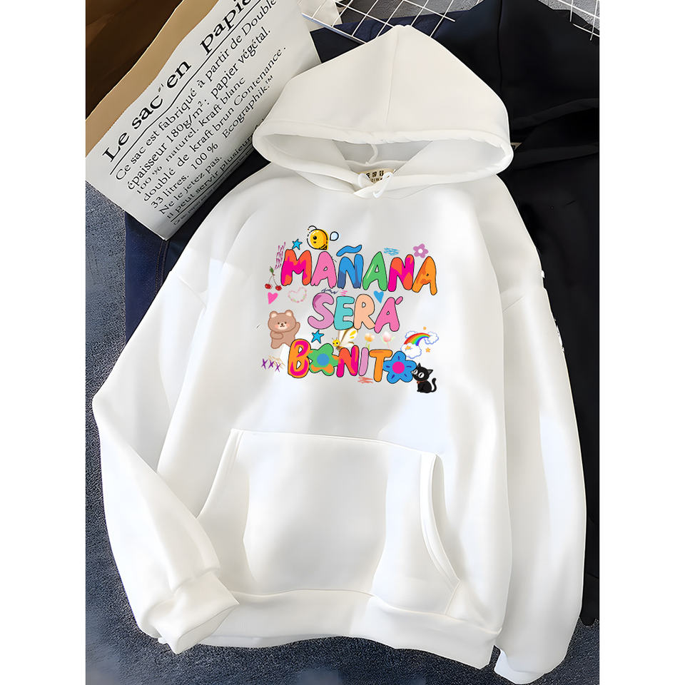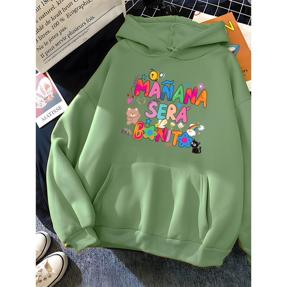 Hirsionsan Rainbow Letter Print Women Sweatshirt Soft Warm Casual Female Hoodies 2023 Autumn New Loose Fleece Tops for Girls - W