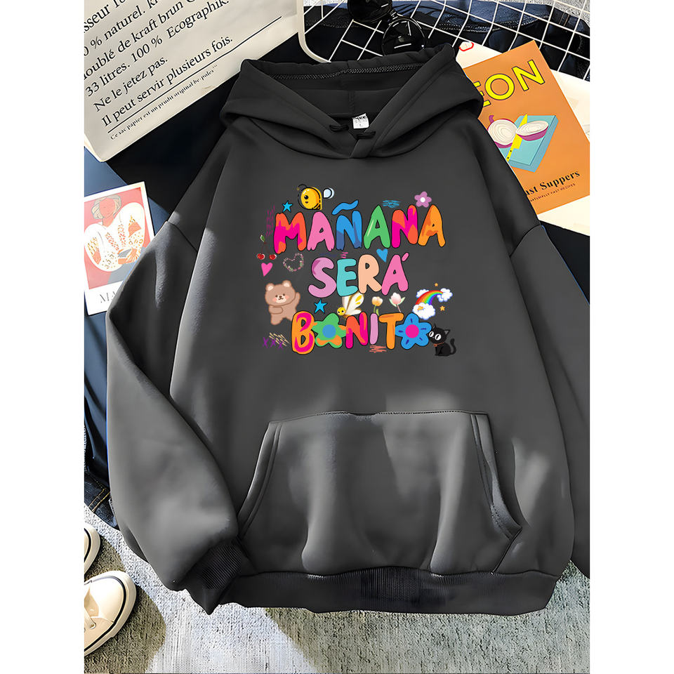 Hirsionsan Rainbow Letter Print Women Sweatshirt Soft Warm Casual Female Hoodies 2023 Autumn New Loose Fleece Tops for Girls - W