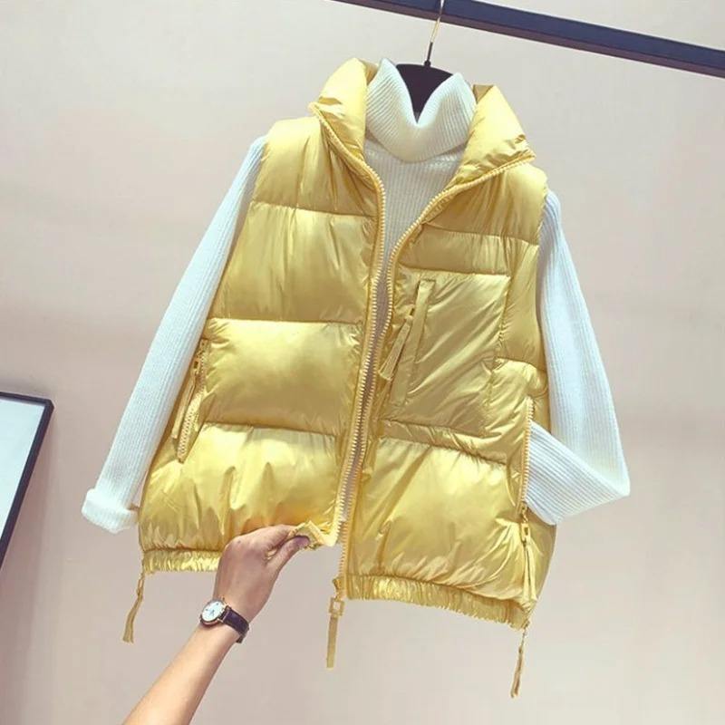 Women's Winter Trend Sleeveless Vests Jackets Very Warm Duck Down Puffer Coat in Fleece Fabric on Sale