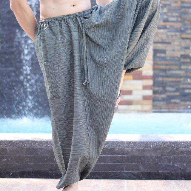 Hmong Style 100% Cotton Eco-Friendly Breathable Lightweight Casual Tribal Trousers Elastic Waist Summer Made Thailand Canvas