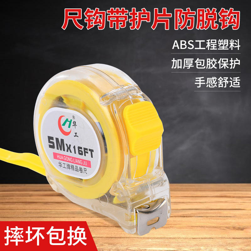 Hmxi16ft Self Winding Tape Measure 5M Stainless Steel Blade Automatic Return Push Button Lock Metric Measuring Tool