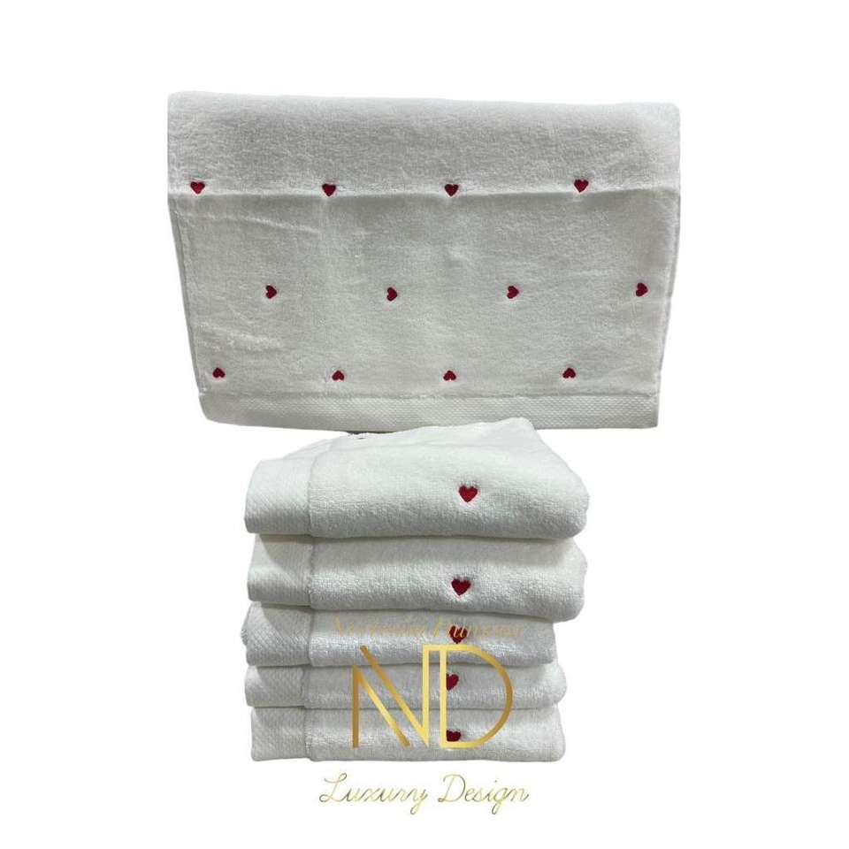 Hobby Lubow 50x90 6-Piece Towel Set White Red Embroidered Bath Towel Sets for Your Home or Vacation!