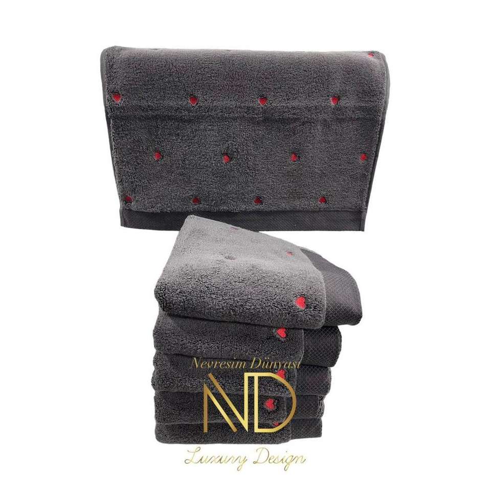 Hobby Lubow 6-Piece Bath Towel Set Love Embroidered in Dark Gray & Red 70x140