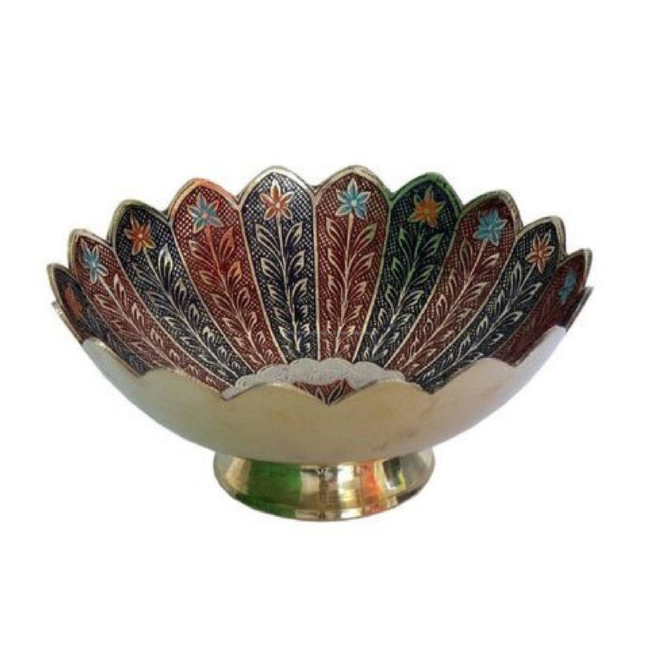 Hoe Selling Metal Fruit Bowl Antique Brass Food and Fruit Serving Tableware Bowl Made India