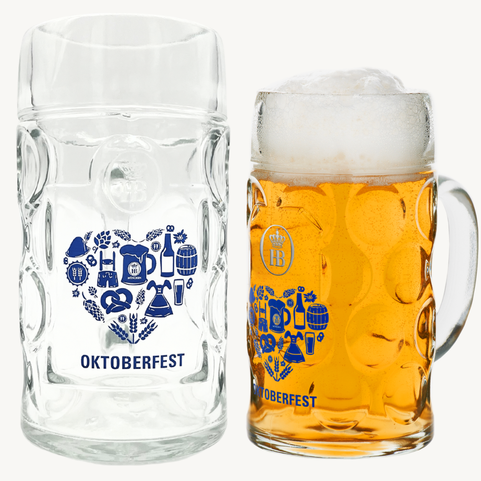 Hofbraeuhaus Muenchen Factory's Classic 1 L 'Oktoberfest Herz' Glass Beer Mug Transparent Glass Mug