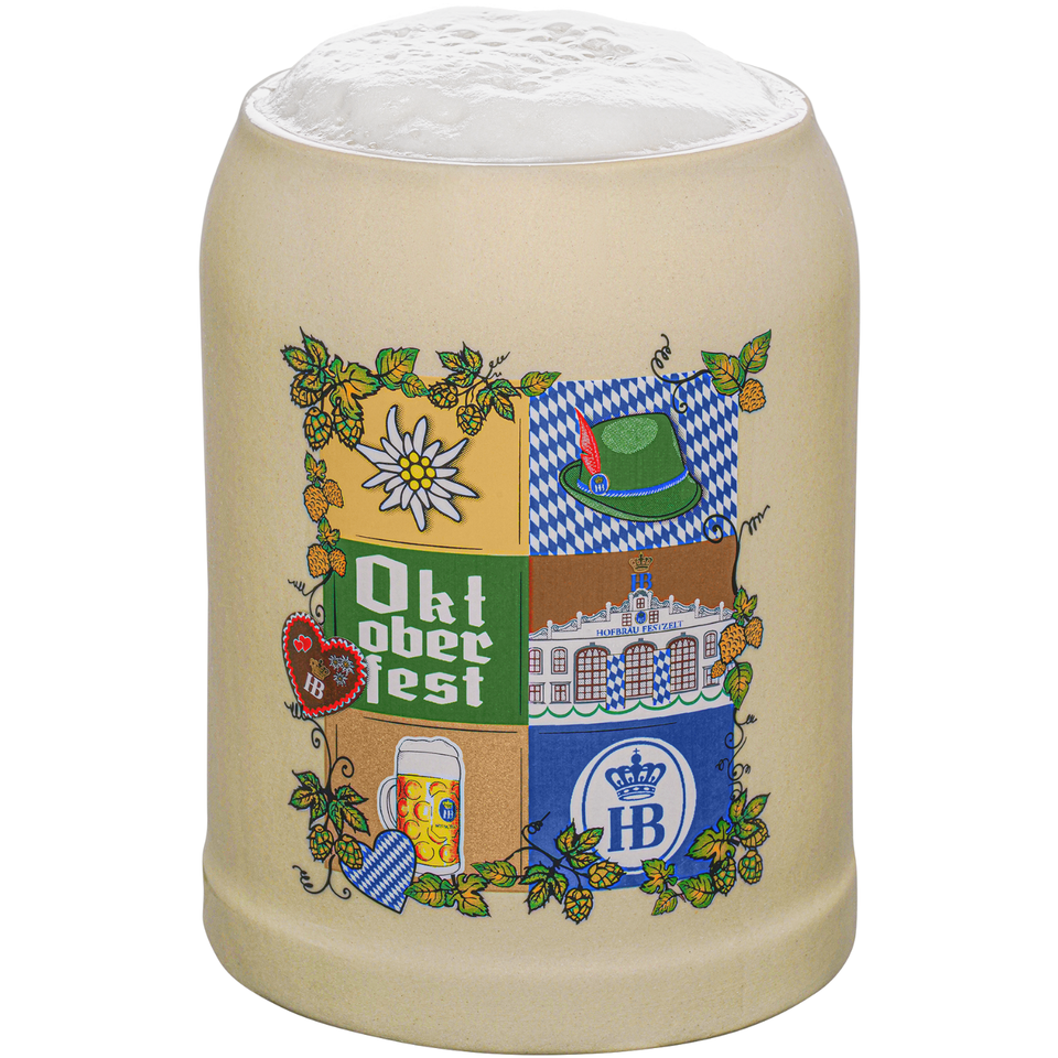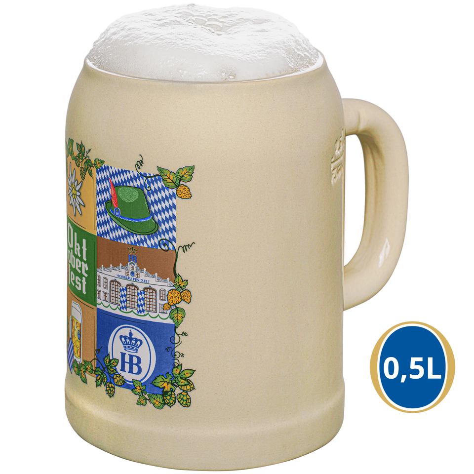 Hofbrauhaus München Festival Gift 0,5 L Stoneware Beer Tankard Mug Classic Oktoberfest Collage Design with Men Drinking Beer