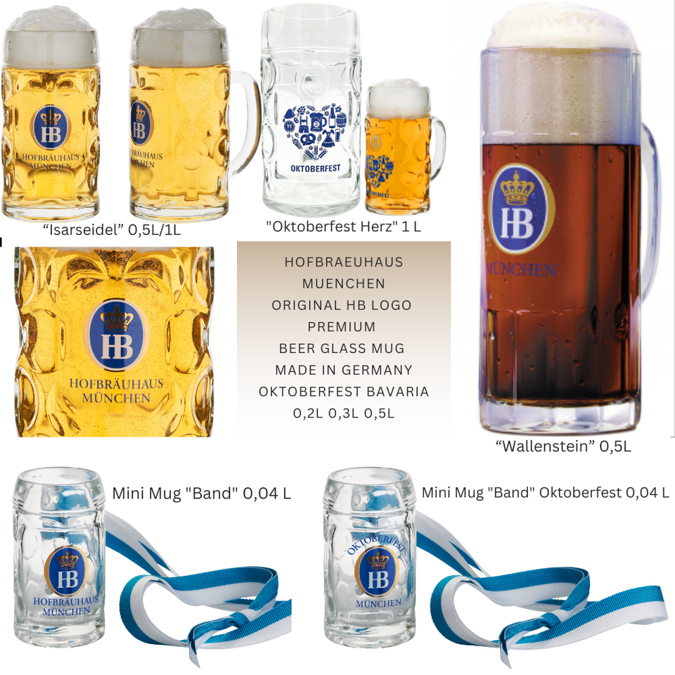 Hofbraeuhaus Muenchen Original HB Logo Premium Beer Glass Mug Jug Tankard Classic Made Germany for Oktoberfest Bavaria Sizes