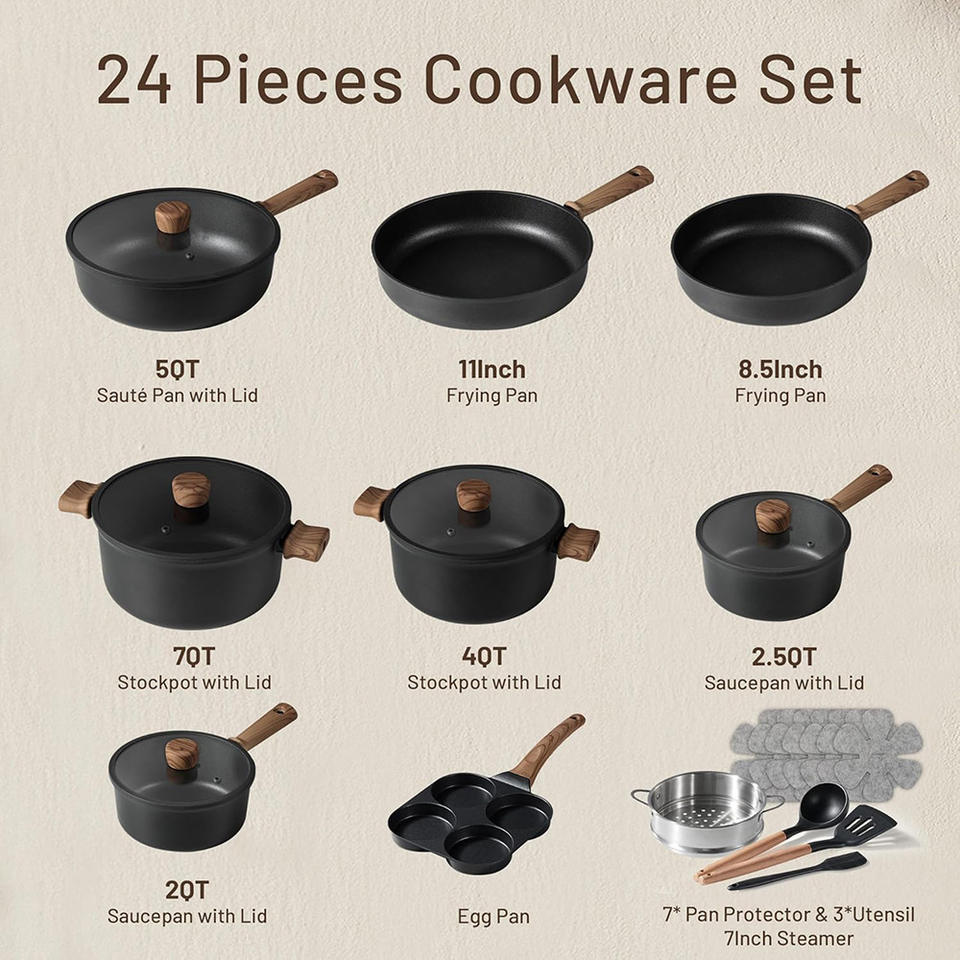 Hokkaido Collection Non-Stick Cookware Set Aluminum Alloy Base Oven Safe Frying Boiling Stir-Frying Kitchen Essentials